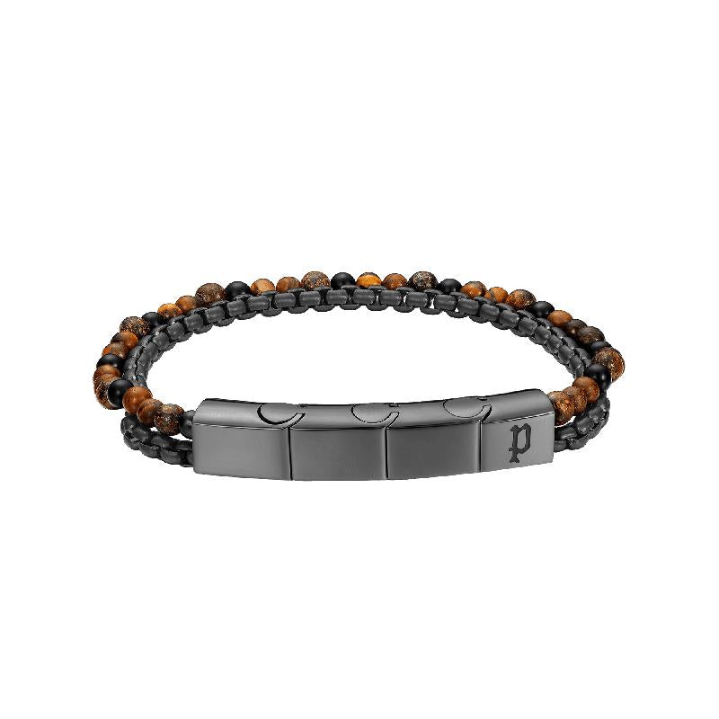 | Material | Tiger eye beads and stainless steel IP gun‑box chain |